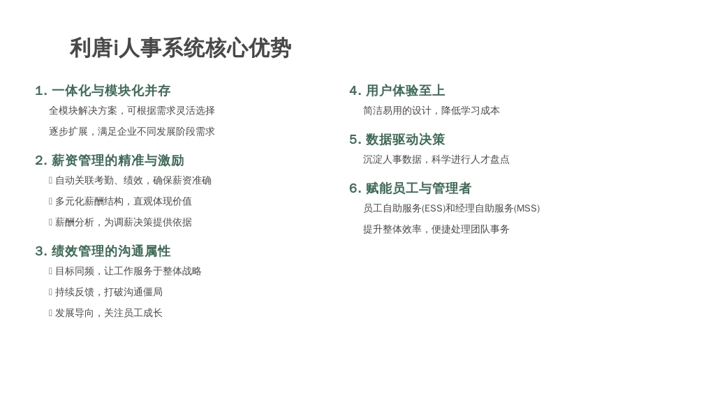 - 选择利唐i人事:基于调研结果和目标,选择利唐i人事中与当前痛点最匹配的模块。