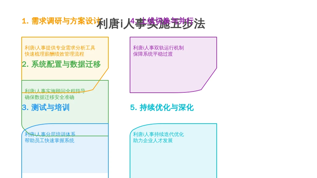 ![['需求调研与方案设计 (1-2周)', '系统配置与数据迁移 (2-4周)', '测试与培训 (1-2周)', '上线切换与并行 (1个月)', '持续优化与深化应用 (长期)']](https://docs.ihr360.com/wp-content/uploads/2025/06/4485f2d8-080d-407a-be6f-d50a478ea4c4.webp)