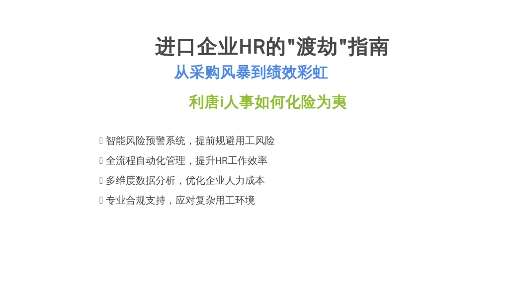 嘿,各位奋战在人力资源一线的同仁们!今天咱们聊聊进口企业HR的独特挑战。在全球贸易浪潮中拼搏的HR们,不仅要充当员工的”知心姐姐/哥哥”,更要成为业务部门的战略伙伴,甚至时常扮演风险控制师和税务顾问的角色。正是这种”十项全能”的定位,让我们不得不面对诸多核心痛点——本文将聚焦进口企业在采购风险、税务处理、流程优化及绩效管理等维度的实际困境,并为您揭晓我们的破局利器:利唐i人事系统。通过风趣的案例和干货分析,带您见证这套系统如何化繁为简,实现企业与员工的双赢格局。