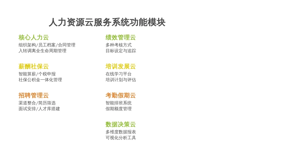 - 黄金时代(SaaS云系统崛起):随着云计算、大数据、移动互联网技术的发展,SaaS(Software as a Service,软件即服务)模式的人事系统应运而生,开启了HR管理的新纪元。