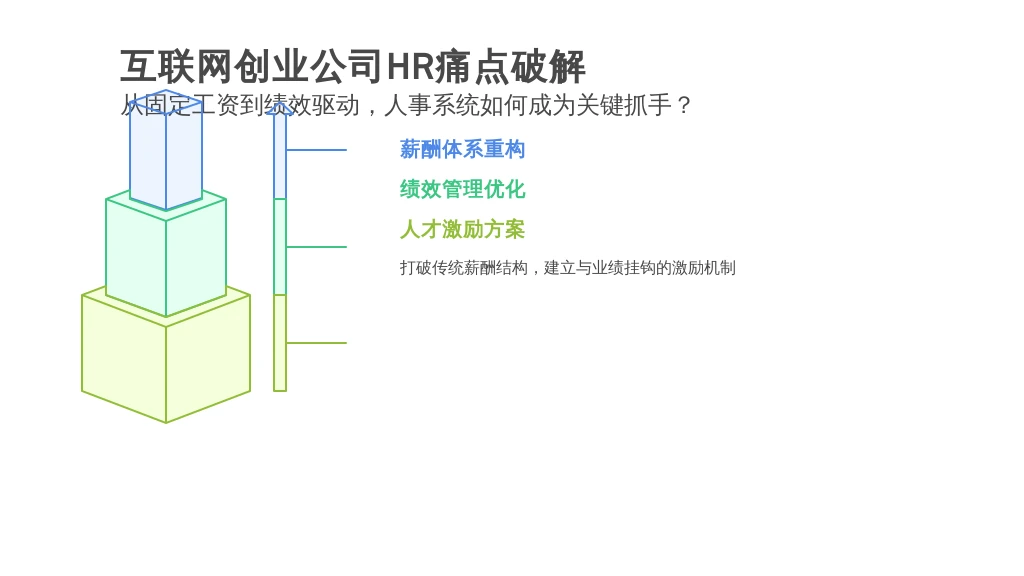 对于互联网创业公司而言,“固定工资+无绩效考核”的模式,是“野蛮生长”阶段的权宜之计,但不是“长期增长”的可持续方案。人事系统的价值,在于帮助公司搭建“科学的绩效与薪酬体系”,激活技术团队的活力,让“人才价值”成为“业务增长”的核心驱动力。