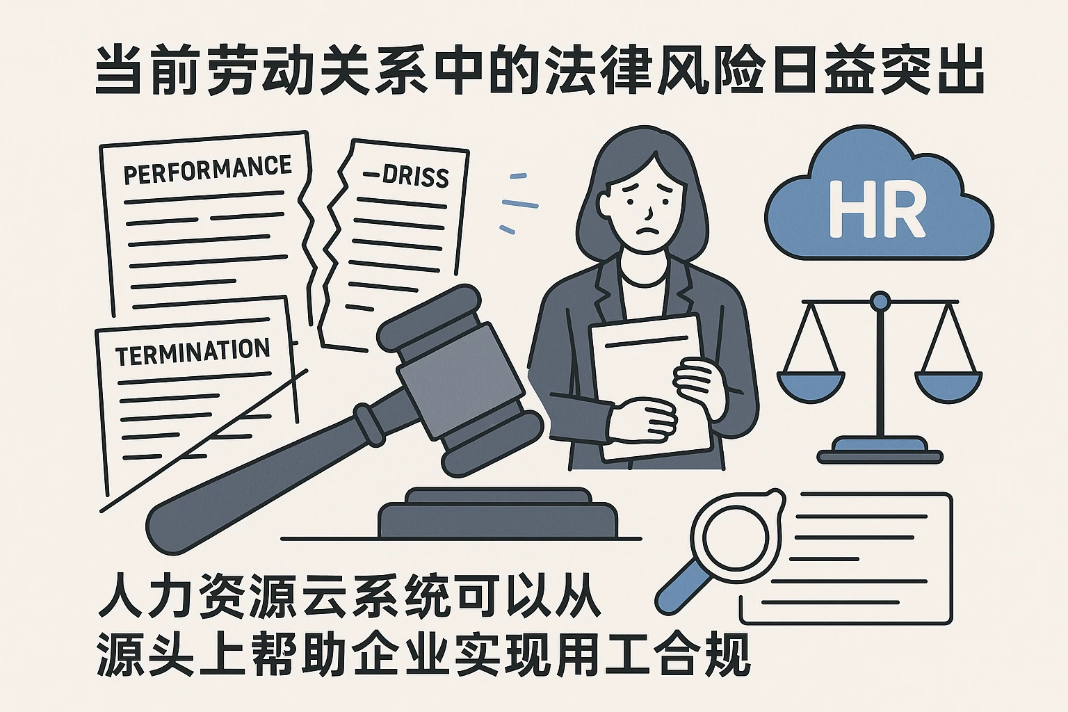 当前劳动关系中的法律风险日益突出。员工因证据不足,在遭遇绩效剥削、被动离职等问题时,经常陷入举证困境。人力资源云系统可以从源头上帮助企业实现用工合规: