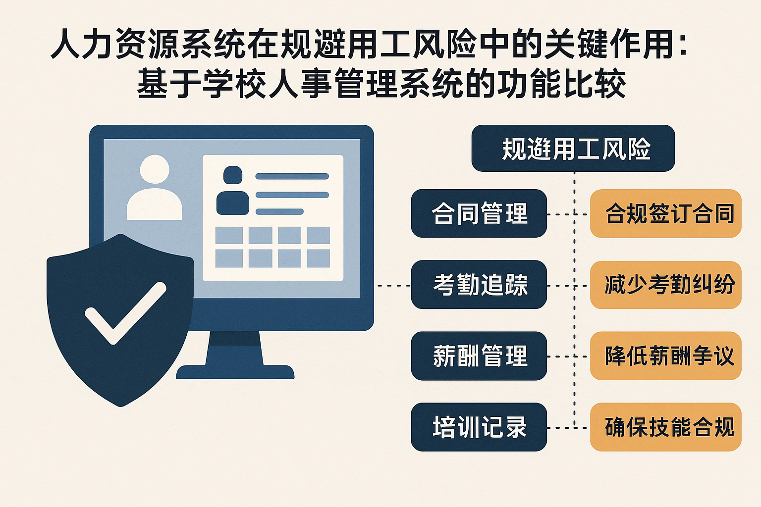 本文从企业用工风险管控的角度出发,通过分析人事系统功能比较的重要性,重点探讨了人力资源系统如何帮助学校人事管理系统规范用工流程、规避法律风险。文章详细解析了现代人事系统在劳动合同管理、薪资核算、试用期管理等方面的核心功能,并通过对不同系统功能的比较,为企业选择合适的人事管理系统提供了专业建议。